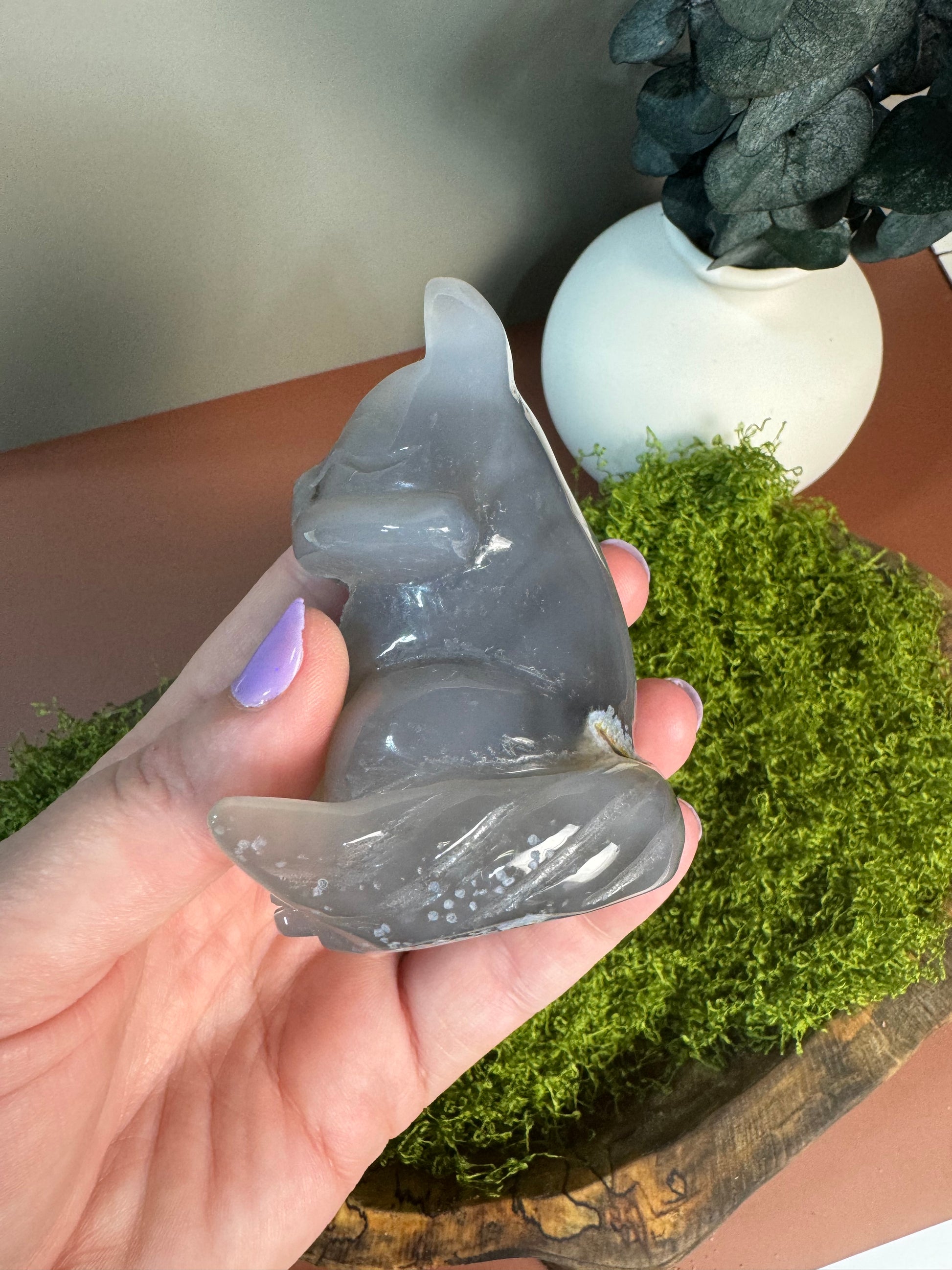 Druzy Blue Agate Fox Carving