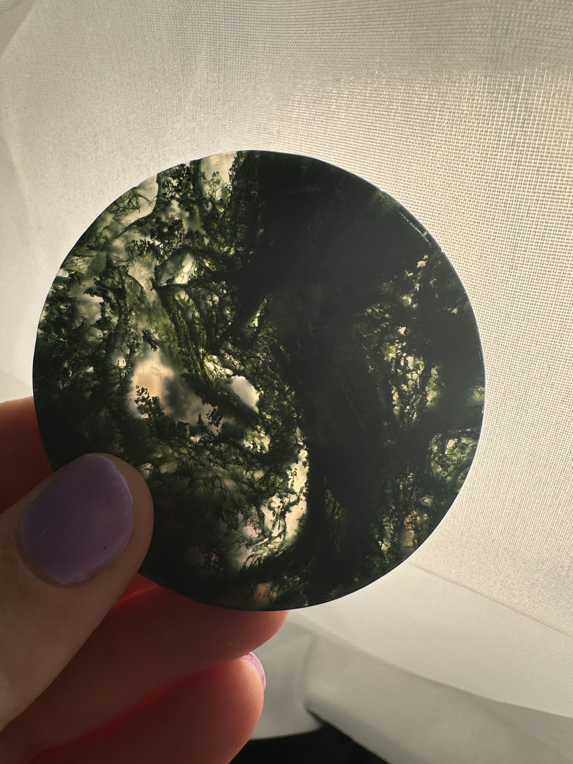 This listing is for Moss Agate Disks. Purchasing one will get you one intuitively selected disk.