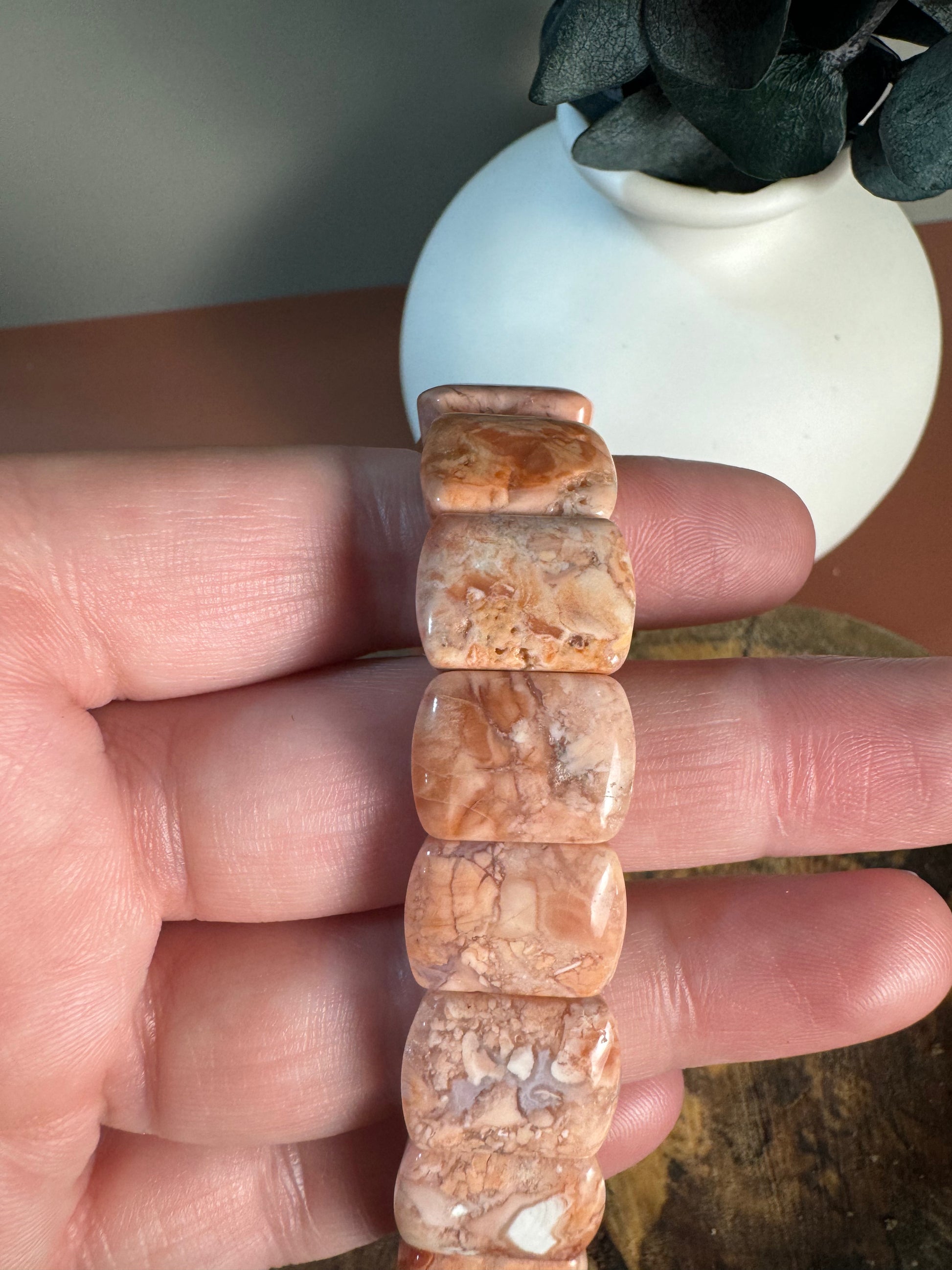 This listing is for a Pink Agate Bangle bracelet.